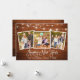 Modern Fun Calligraphy Script 3 Photo Family Happy New Year Card with String Lights - Rustic Wood Print