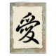 Chinese brush calligraphy for love against a deckled edge on a soft sponged background. A great card for any occasion.
