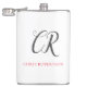 Calligraphy Monogram Name Black Grey Custom Gift Hip Flask
