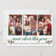 Modern Calligraphy Script 3 Photo Family Photo Collage More Cheer This Year Holiday Card includes Watercolor Holly Berries - Green Script