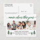 Modern Calligraphy Script 3 Photo Family Photo Collage More Cheer This Year Holiday Postcard includes Watercolor Pine Trees - Green Script