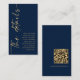 Calligraphy Navy Blue Gold QR Code Wedding Details Enclosure Card