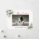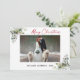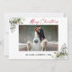 Modern Minimalist Elegance Calligraphy Ink Pen Handwritten Script Merry Christmas Photo Holiday Card includes Elegant Watercolor Greenery, Eucalyptus Leaves & Holly Berries. Red Script.
