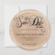 Calligraphy Round Photo Rustic Wood Save The Date Invitation