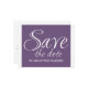 Calligraphy Save the Date Postcard in purple and white with a sophisticated typography design. This elegant and chic save the date postcard is easy to customise with your wedding details. For more customisation options, click on the Customise It button.