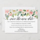 Modern Calligraphy Script Save The New Date Wedding Postponed New Wedding Date Card. Watercolor Pink Blush Floral including pink roses, white flowers and greenery.