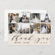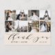 This elegant thank you postcards feature 8 photos with "thank you" in calligraphy script along with couple names and wedding date. The back of this postcard features plenty of room to write out a personal heartfelt thank you note, along with lines for the mailing address.