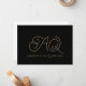 An elegant ornate and artistic chic gold monogram with flourished calligraphy script typography on a black background, elevates your initials to a unique and dramatic design element. Try out your own initials in this dramatic flowing calligraphy style. The back of the card is white to allow for writing notes.