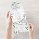 Calligraphy Script Green Foliage Wedding All In One Invitation