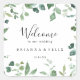 Calligraphy Script Green Foliage Wedding Welcome Square Sticker