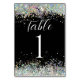 Elegant Calligraphy Script Holographic Glitter Black Table Number