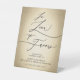 Stylish Black Calligraphy Script On Faux Gold Foil In Lieu Of Favours, A Donation Has Been Made To A Charity Wedding Tabletop Sign.