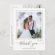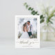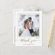 This design features a modern simple elegant calligraphy script, a minimalist minimal two 2 photo, a wedding photo photography couple, a basic clean contemporary template, an elegant typography script text font, a photo wedding thank you cards, a custom customised personalised design, a golden handwritten lettering font, a creative simplistic elegant script, a calligraphy wedding thank you budget-friendly vellum overlay effect postcards.