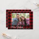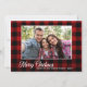A beautiful rustic style, red buffalo plaid - tartan holiday card with "Merry Christmas" calligraphy script, your family name, year or other text and your family photo. Personalise your message on the back of the card for the perfect touch.