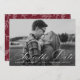 Announce your upcoming nuptials in style with our white calligraphy script save the date cards. The elegant save the dates display your horizontal engagement photo with "Save the Date" in a white calligraphy script. Personalise the front of the photo save the date by adding your names, wedding date, and city/state. The card reverses to display a white foliage pattern with a burgundy background or colour of your choice.