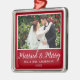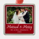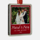 Modern Calligraphy Script, Red Married and Merry Wedding Photo Ornament