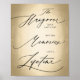 Stylish Black Calligraphy Script On Faux Gold Foil The Hangover Only Last A Day But The Memories Last A Lifetime Wedding Reception Open Bar Sign.