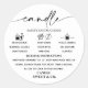 calligraphy Script fonts and candle safety icons are used on this minimalist candle warning label. The most crucial candle warning information is included on this black and white safety instructions candle label. Your candle container design will come together beautifully with the addition of this round safety label. Important! Verify that all of the content complies with local laws by checking it twice. Only serving as a guide, the placeholder text.