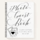 Elegant Calligraphy Script Wedding Guestbook Photo Guest Book Have your guests snap photos and stick into the book, in beautiful flowing fancy letters and your personalised names, location, and date. A stylish yet simple formal design in black and white or any background colour you choose. Just click the customise further link, shown under the text personalisation area on the right, and choose your custom colour background. This sign poster template makes it fast and easy to create stunning additions to your wedding decor. Signs can be enlarged, there are many sizes to choose from, as well as options for custom framing and matting. wedding custom signage.