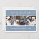 Modern Trendy Calligraphy Script 3 Photo Family Photo Collage Merry Christmas Card - Dusty Blue with Snowflakes back