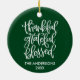 Calligraphy Thankful Grateful Blessed Green Ceramic Ornament