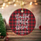 Calligraphy Thankful Grateful Blessed Red Plaid Ceramic Ornament