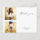 This pretty graduation thank you postcard features two photos and space to write a personal message to recipients. On the left, you can add two square photos of the new graduate. On the right, "Thank you" is written in modern calligraphy at the top. Below is a blank area to write custom handwritten notes to recipients. At the bottom, add the graduate's name and graduation year. On the back, there's room to add additional text if desired.