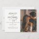 This beautiful, modern CALLIGRAPHY TYPOGRAPHY 2 Photo Wedding Save the Date Invitation features a black and white calligraphy script and modern all cap sans serif font invitation design on the front, with your vertical / portrait orientation photo on the right. The back of the invite features your full-bleed horizontal engagement photo. A beautiful invite!