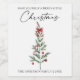 Calligraphy Watercolor Christmas Tree Red Bow Wine Label