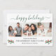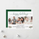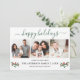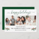 Modern Calligraphy Script 3 Photo Family Photo Collage Happy Holidays Card includes Watercolor Christmas Holly Berries - Forest Green Script