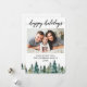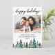 Modern Elegant Calligraphy Script, Watercolor Pine Trees, Happy Holidays Family Photo Holiday Card