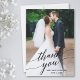 Modern Calligraphy Wedding Bride and Groom Photo Overlay Thank You Card - Black Script