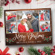Modern Fun Calligraphy Script 5 Photo Couple Photo Collage Merry Christmas Postcard includes Watercolor Christmas Holly Berries - Rustic Country Wood