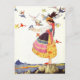 Vintage illustration of a little maid calling the birds. She is wearing a colourful costume. Illustration by Maud and Miska Petersham.