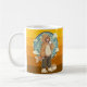 character wearing a cute, full-body pufferfish. They have wavy brown hair and a faceless aesthetic, holding a warm mug of coffee.