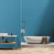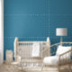 Blue textured fabric surface with a vertical line pattern, creating a subtle and calming effect, suggesting a soft and natural feel.