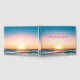 Memorial service guest book, perfect for a nautical funeral, with a photo of a sun setting over the ocean.