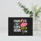 Calm The Flock Down Funny Pink Flamingo Announcement Postcard
