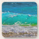 Are you ready for a beach vacation getaway? How about the next best thing! Complimentary shades of blues, aqua, and more are featured in this calming blue ocean waves beach art design.