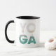 Take a break and be transported to the calming shore of the beach with every sip. The design features a calming beach scene with crystal clear ocean and sandy shore set inside bold yoga wording.
