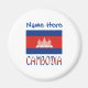 This round magnet has a Cambodian flag with the word CAMBODIA, below, in the colours of the flag. Above is a place where you can add your name, in blue letters, to personalise, or create a custom gift. Great for family reunions, travel groups, and clubs. Terrific stocking stuffer and party favour, too.
