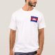 The front of this t-shirt bears a small Cambodian flag with its familiar depiction of angkor wat over red and blue, while the back displays a relief map of Cambodia. Available on t-shirts, sweatshirts, polos, long-sleeves and more.