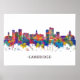 Elegant Watercolor Skyline of Cambridge, a city in Middlesex County, Massachusetts