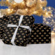 Wrapping paper with a camel brown fleur-de-lis pattern on a black background. Customisable. Modern, trendy, and elegant, it is a sophisticated classic that is perfect for any occasion.