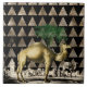 Vintage camel by the 19th century naturalist and artist Charles D'Orbigny. The background is a pattern of golden pyramids on black.