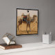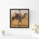 A furry two-humped camel wearing his fancy embroidered saddle standing patiently in the desert.
