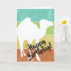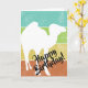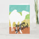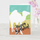 This birthday card for camel lovers features a white silhouette style illustration of a camel against a distressed striped background of aqua blue, light green, yellow and orange. All the text on this card can easily be personalised and changed using the fill-in-the-blank templates.