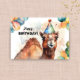 This birthday card features a unique and original illustration of a watercolor camel wearing a festive party hat and is filled with colourful birthday balloons. The watercolor art illustration adds a unique and artistic flair to the festivities, capturing the majestic presence of this animal. Whether for zoo enthusiasts or those who appreciate the beauty of these magnificent creatures, this greeting card adds a touch of the exotic to any birthday celebration, creating a memorable and special moment for the recipient.