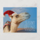 camel with christmas hat holiday postcard