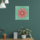 A soothing lotus mandala in shades of pink, peach, aqua and turquoise, created from the shapes and hues of a winter Camellia blossom.